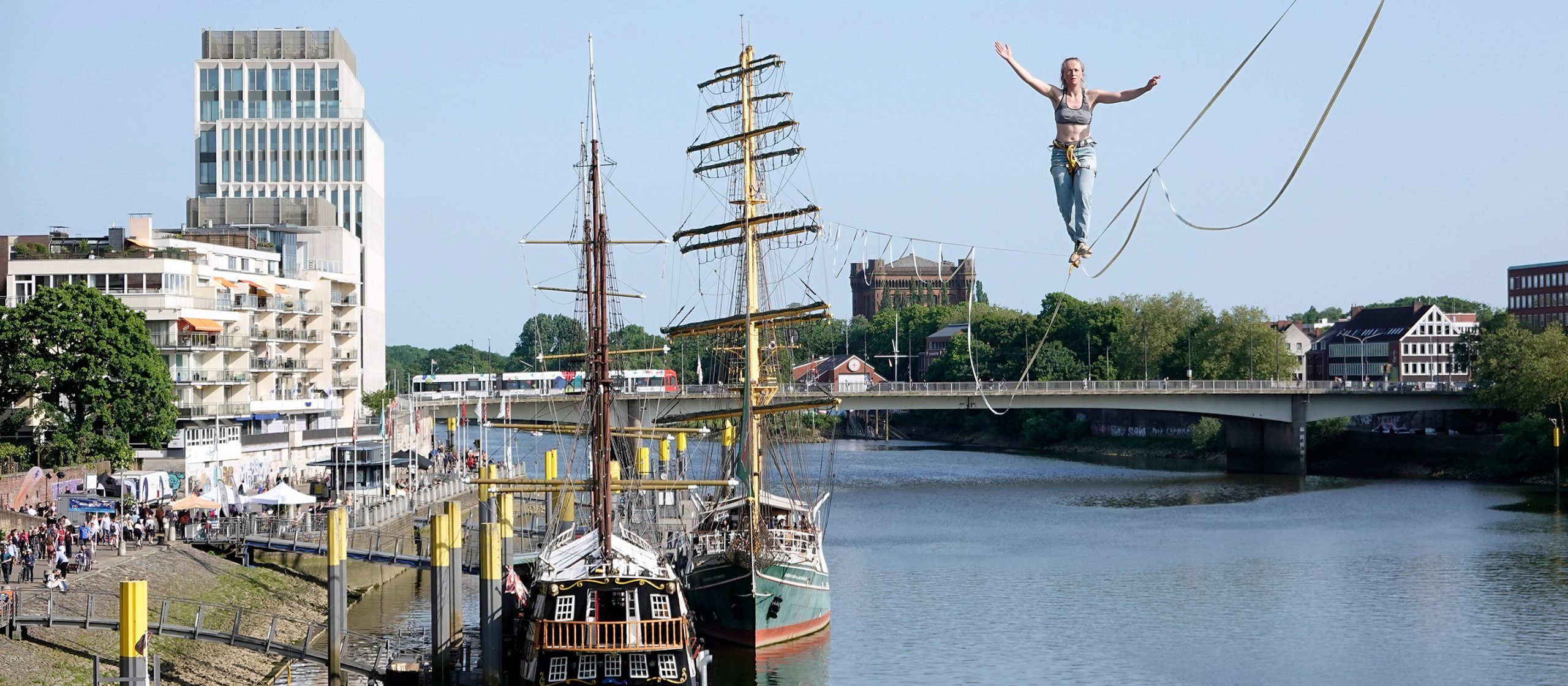 „Slackline-Event“ an der Schlachte: pb+ half bei der Realisierung des Projektes