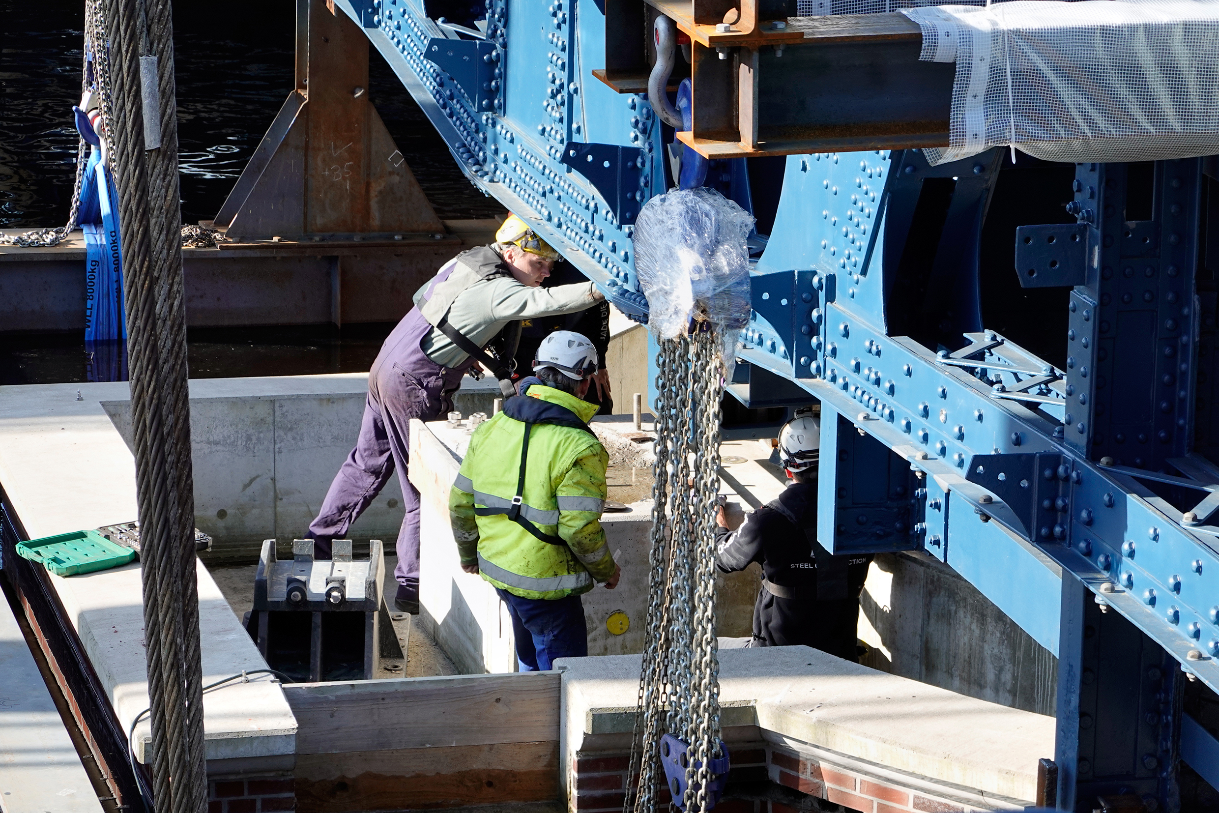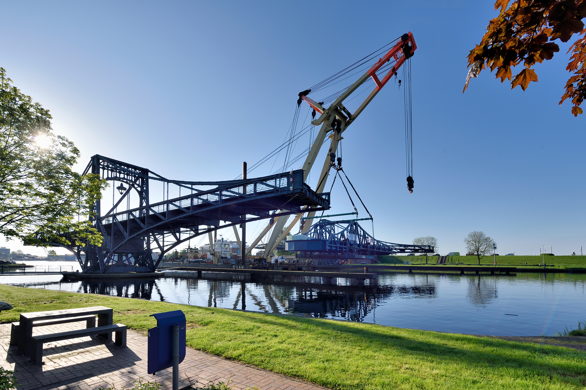 Sanierte Deichbrücke in Wilhelmshaven wieder eingesetzt