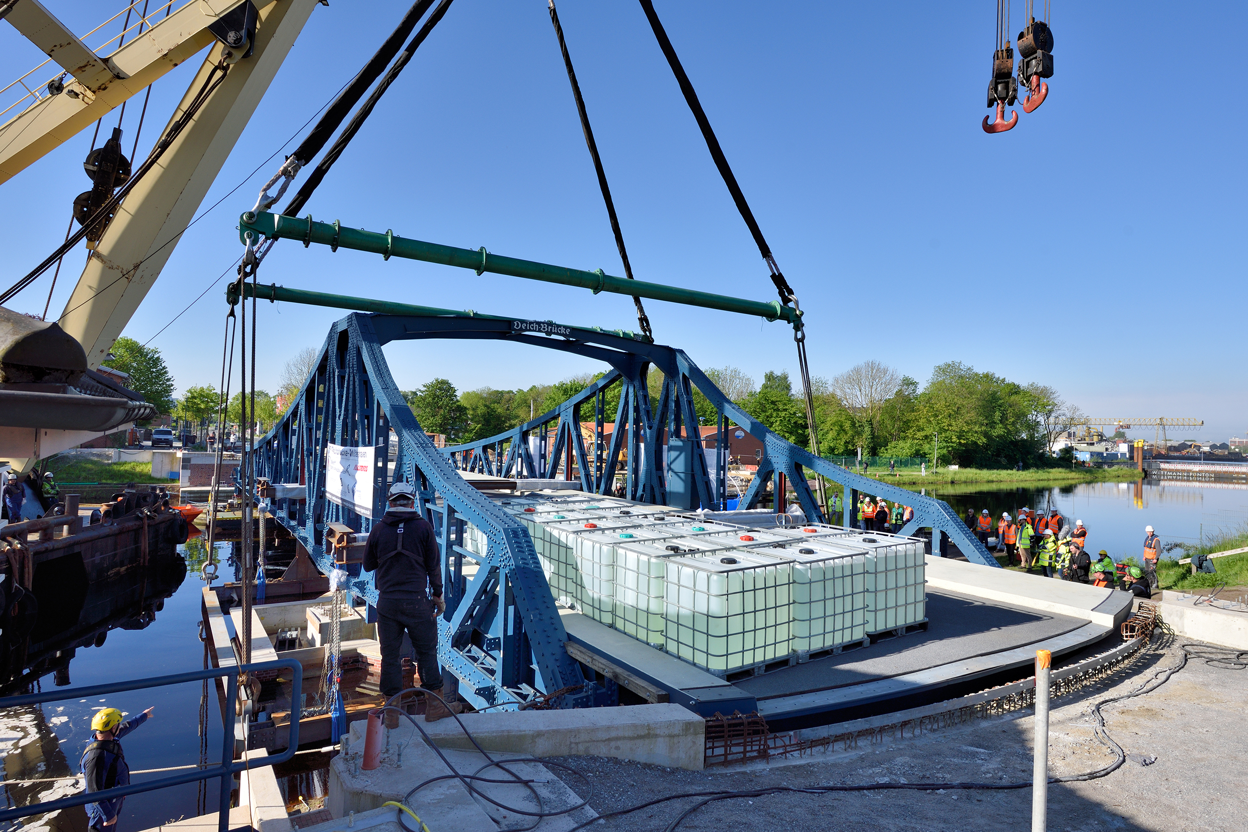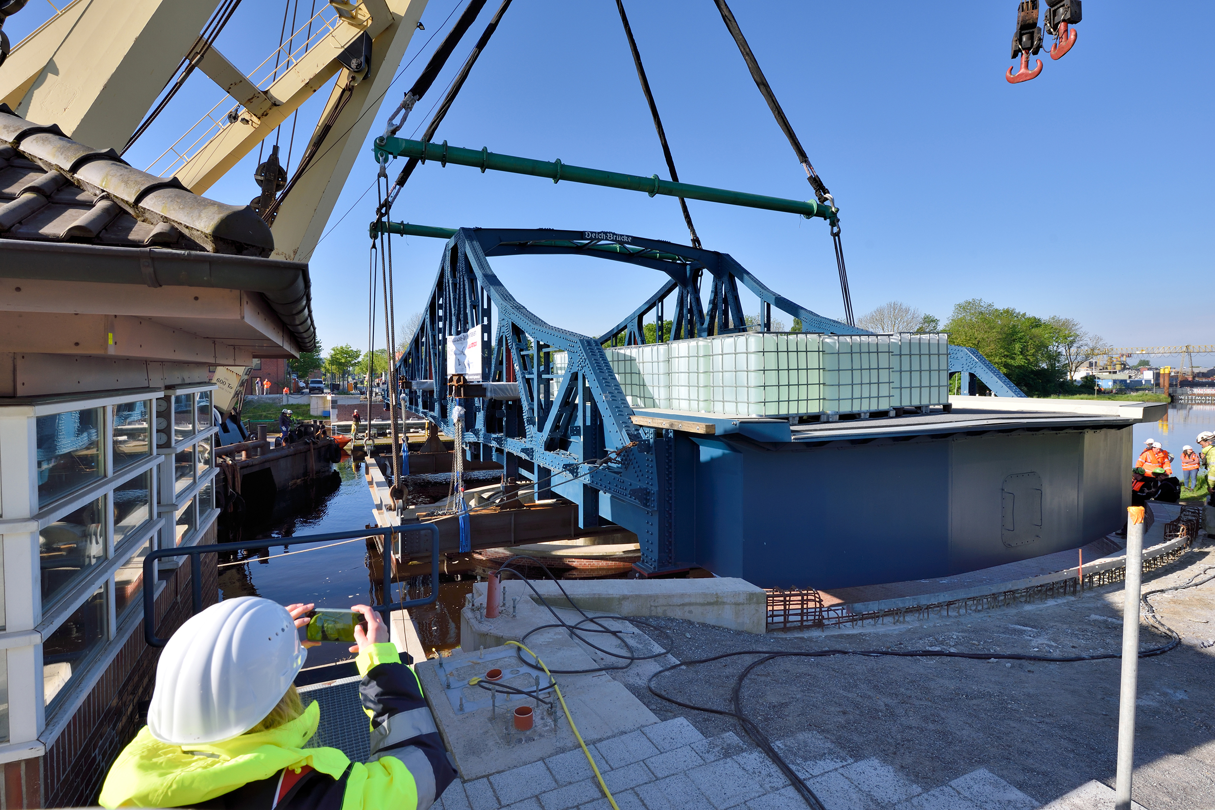 05.2024 | Sanierte Deichbrücke in Wilhelmshaven wieder eingesetzt