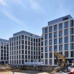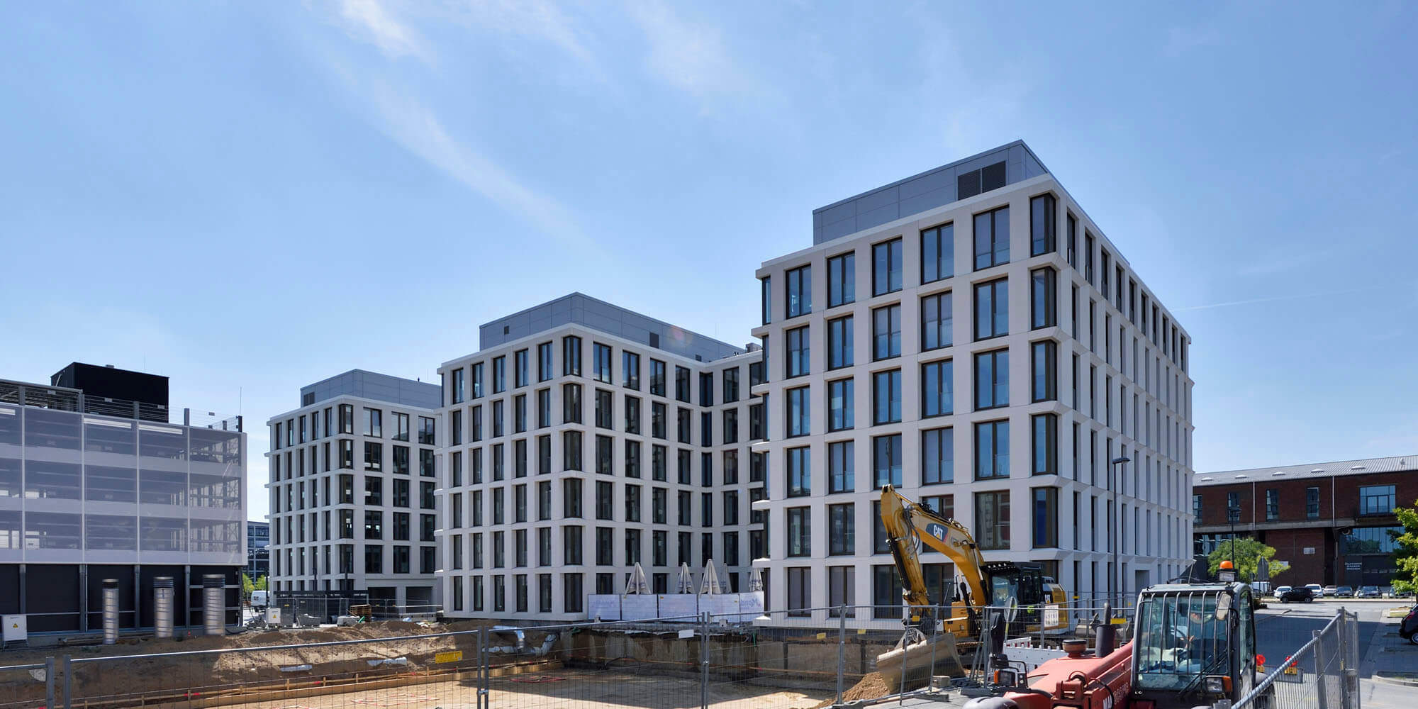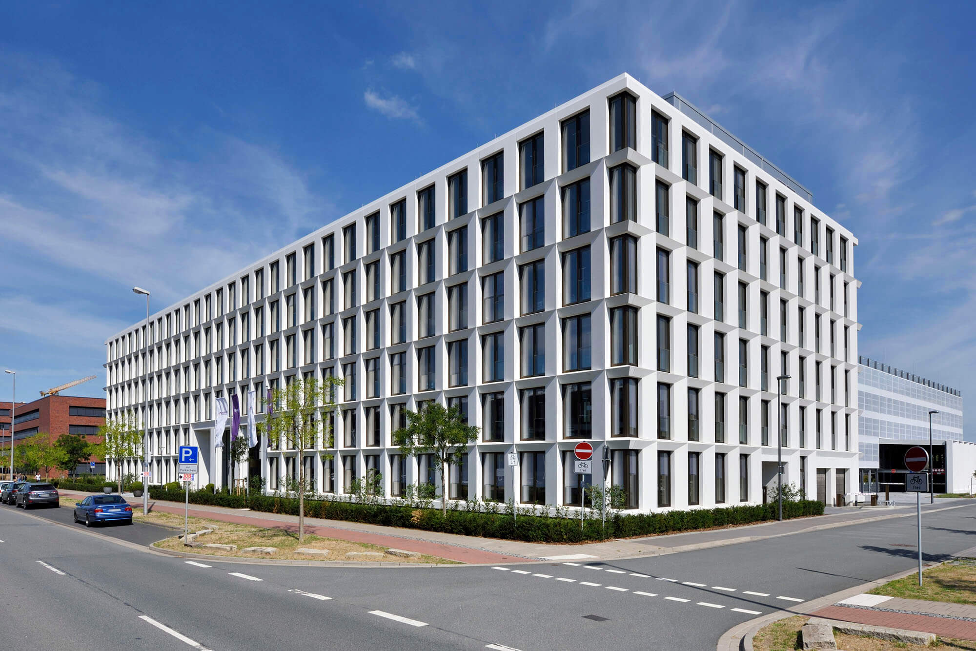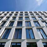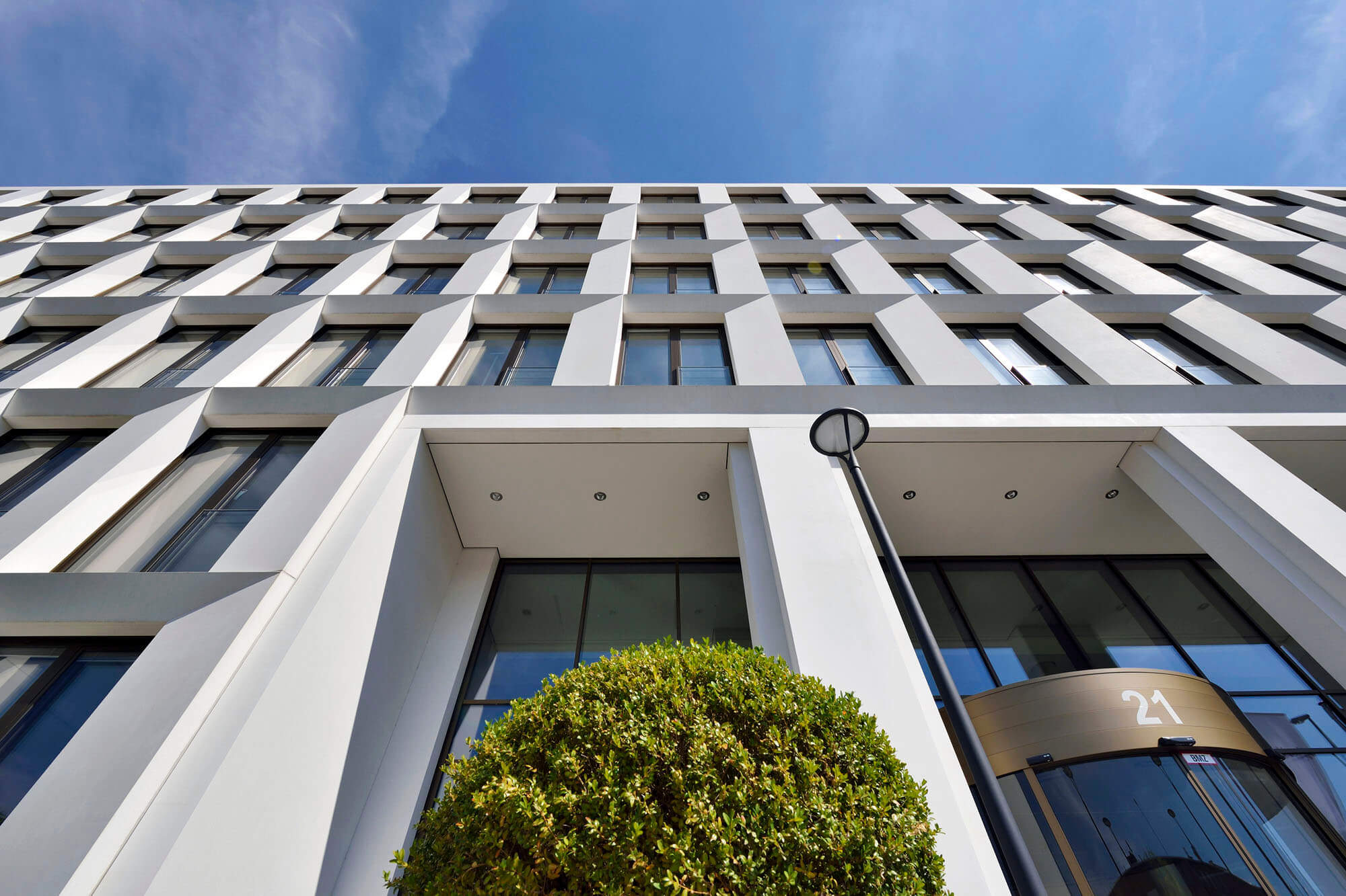 Das neue Office Center in der Konsul-Smidt-Str. 21 in der Überseestadt zeigt optisch und konstruktiv in dieser exponierten Lage besondere Raffinesse. Die Fassadenelemente aus Beton-Fertigteilen sorgen für eine attraktive dreidimensionale Wirkung und lockern das bodentiefe Fensterraster des 6-geschossigen Bürokomplexes gekonnt auf. Die Betonfertigteile bestehen aus einer weiß eingefärbten, gesäuerten und hydrophobierten Oberfläche, die Schmutz und Wasser abweist. Die konstruktive Besonderheit besteht darin, dass die F-förmigen Fassadenelemente zugleich das Gebäude tragen. Die pb+ Ingenieurgruppe AG zeichnete u. a. für die Tragwerksplanung verantwortlich.