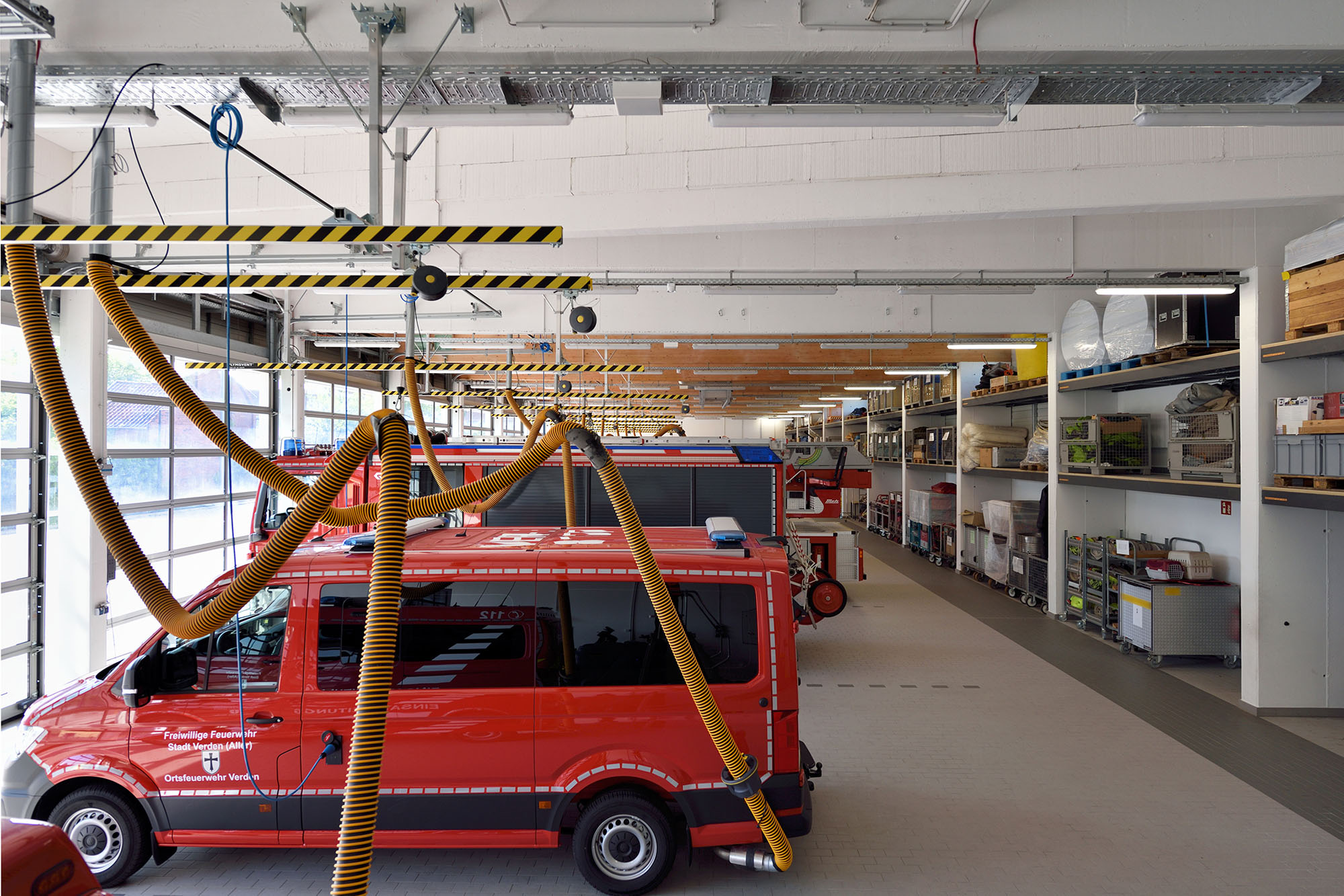 Die alte Unterkunft der Verdener Feuerwehr an der Lindhooper Str. 52 aus den 70er Jahren entsprach nicht mehr den Erfordernissen und den aktuellen Sicherheitsnormen einer modernen Feuerwehr. Nach einem ausgelobten Architekturwettbewerb, den das Berliner Büro „von Ey“ gewann, beschloss der Rat der Stadt Verden im Juni 2016 einen gemeinsamen Neubau für die Verdener Stadtfeuerwehr und die freiwillige Feuerwehr. Die pb+ Ingenieurgruppe AG leistete bei diesem Bauprojekt die Tragwerks- und Ausführungsplanung sowie die Wärmeschutzberechnung. Eine reizvolle Aufgabe für die pb+ Planer*innen, da sie Kindheitserinnerungen an die Faszination für Feuerwehrleute und Feuerwehrautos weckte.