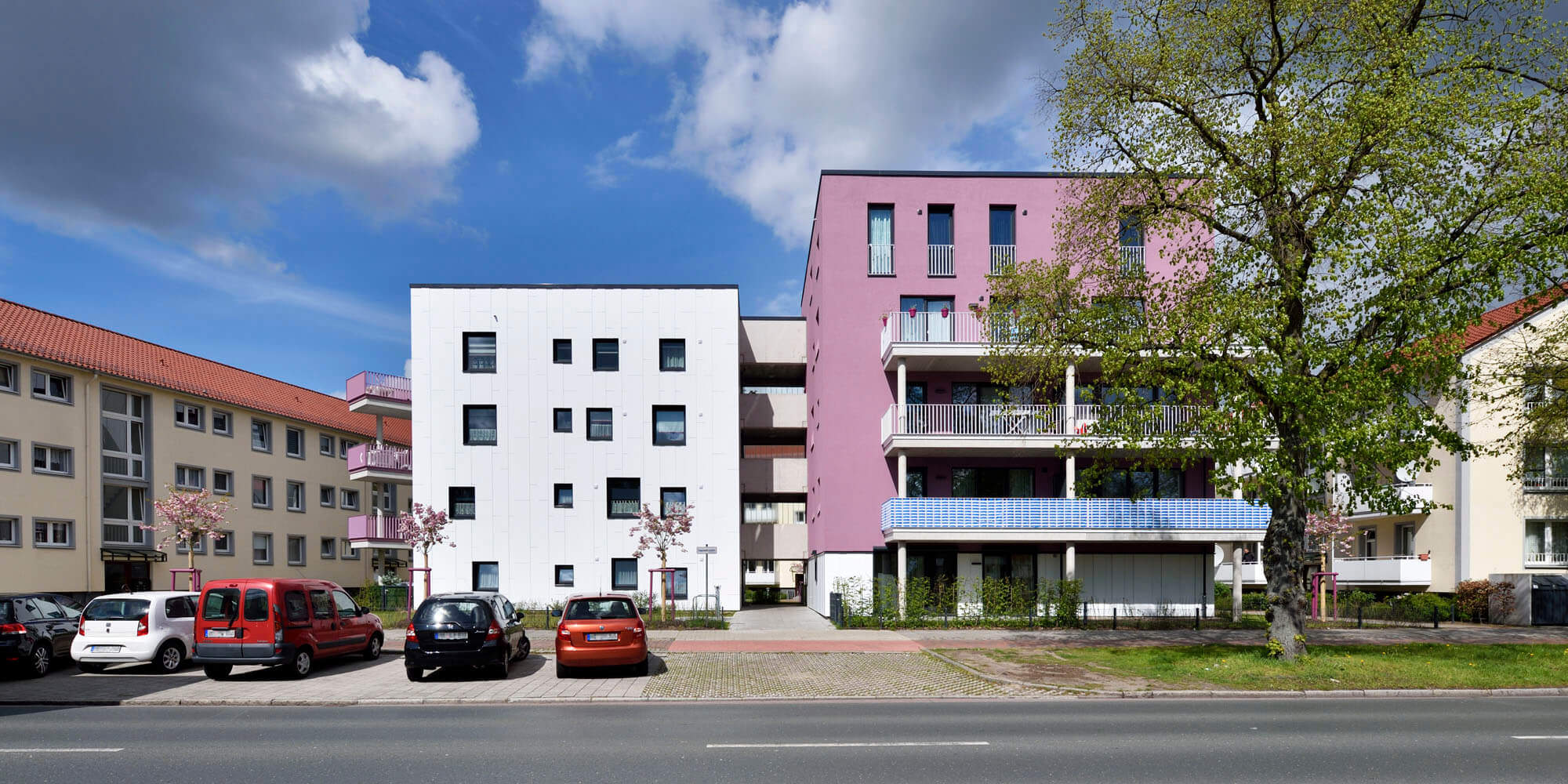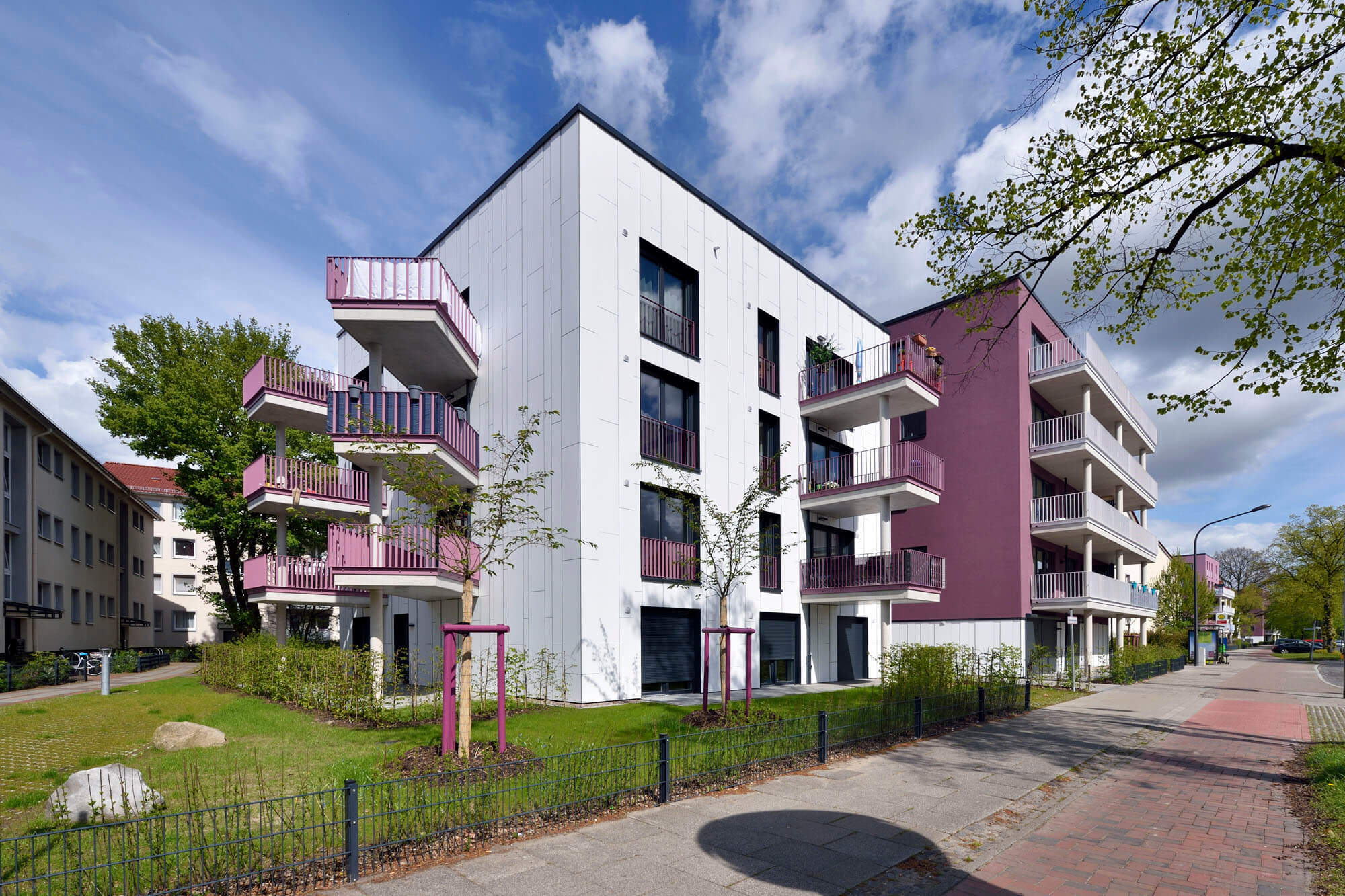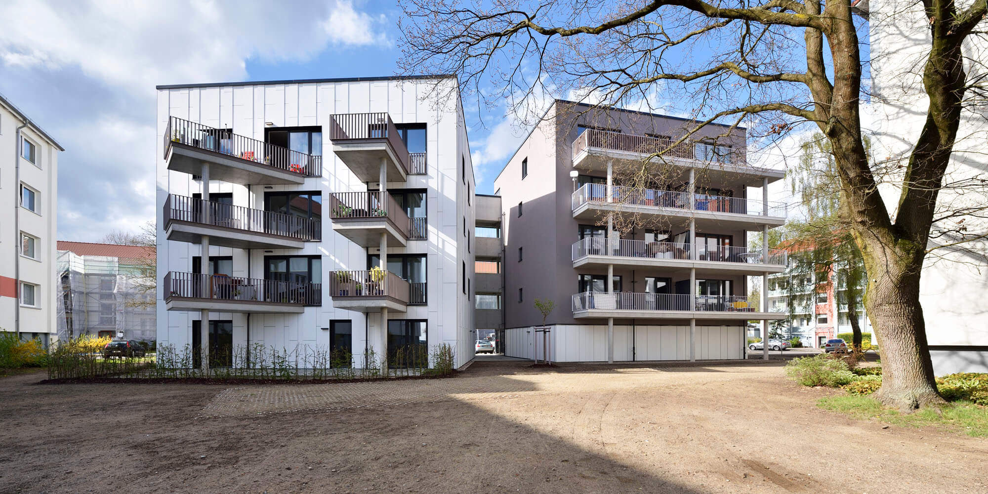 Die nachträgliche Bebauung in vorhandenen Wohnquartieren sieht auch die GEWOBA als einen wichtigen Baustein für die Zukunft. „Auf die großen sozialen Herausforderungen wie Wohnungsmangel, Alterung, Singularisierung und zunehmende Armut können wir nicht die gleichen baulichen Antworten geben wie in den fünfziger Jahren“, betont Peter Stubbe, Vorstandsvorsitzender der GEWOBA. Mit seriellen Bauprojekten an mehreren Standorten will das Unternehmen die eigenen Quartiere weiter entwickeln und neuen Wohnraum schaffen. Für die Akzeptanz der alteingesessenen Nachbarn bedarf es variabler Stadtbausteine mit Integrationspotential, so wie die derzeit fünf „Tarzan und Jane“ Gebäudetypen. In unmittelbarer Nachbarschaft zu bestehenden Wohnblöcken entstanden bisher insgesamt 80 neue, öffentlich geförderte Wohnungen.