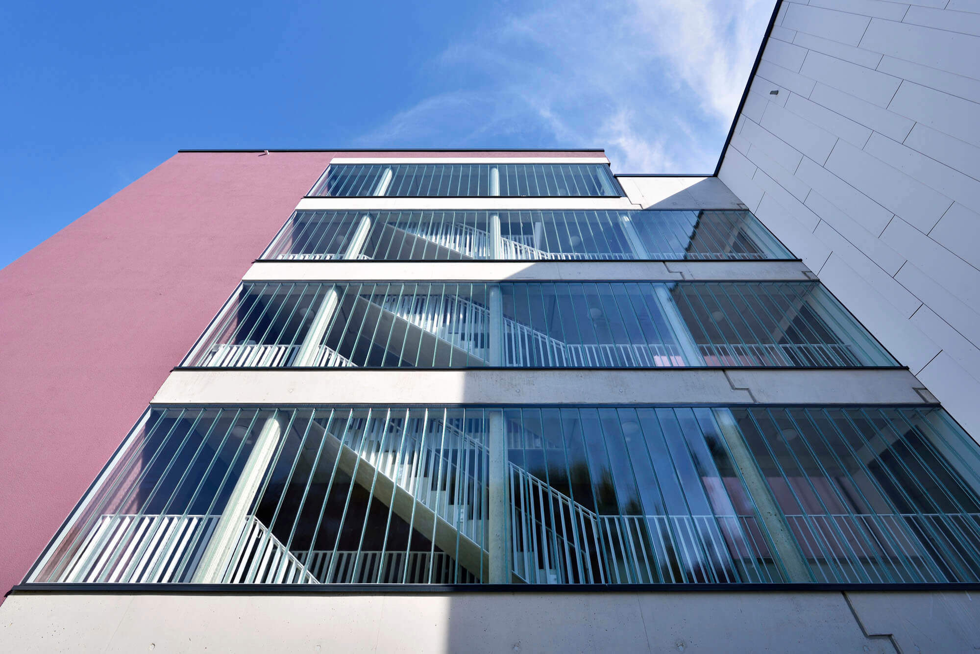 Mai 2017. Der vom Deutschen Städtebaupreis gewürdigte Entwurf von „Spengler Wiescholek Architekten Stadtplaner“ zeigt laut Jury-Urteil exemplarisch auf, wie der vorhandene Freiraum der aufgelockerten Siedlungen der fünfziger und sechziger Jahre mit kostengünstigem, qualitätsvollem Wohnungsbau aufgewertet werden könne. Fünf dieser Gebäudetypen „Tarzan und Jane“ wurden von der GEWOBA bis 2017 in Bremen-Huchting verwirklicht. Die pb+ Ingenieurgruppe AG war mit Statischen Berechnungen für zwei Gebäude und mit Wärmeschutzberechnungen für alle fünf Wohnhäuser involviert.