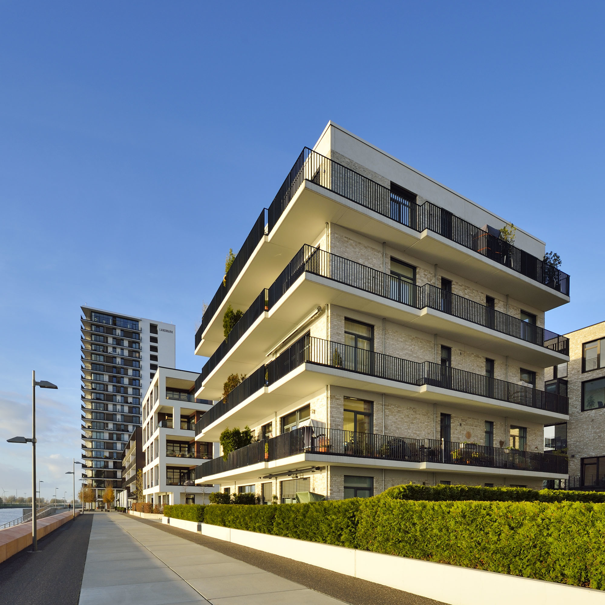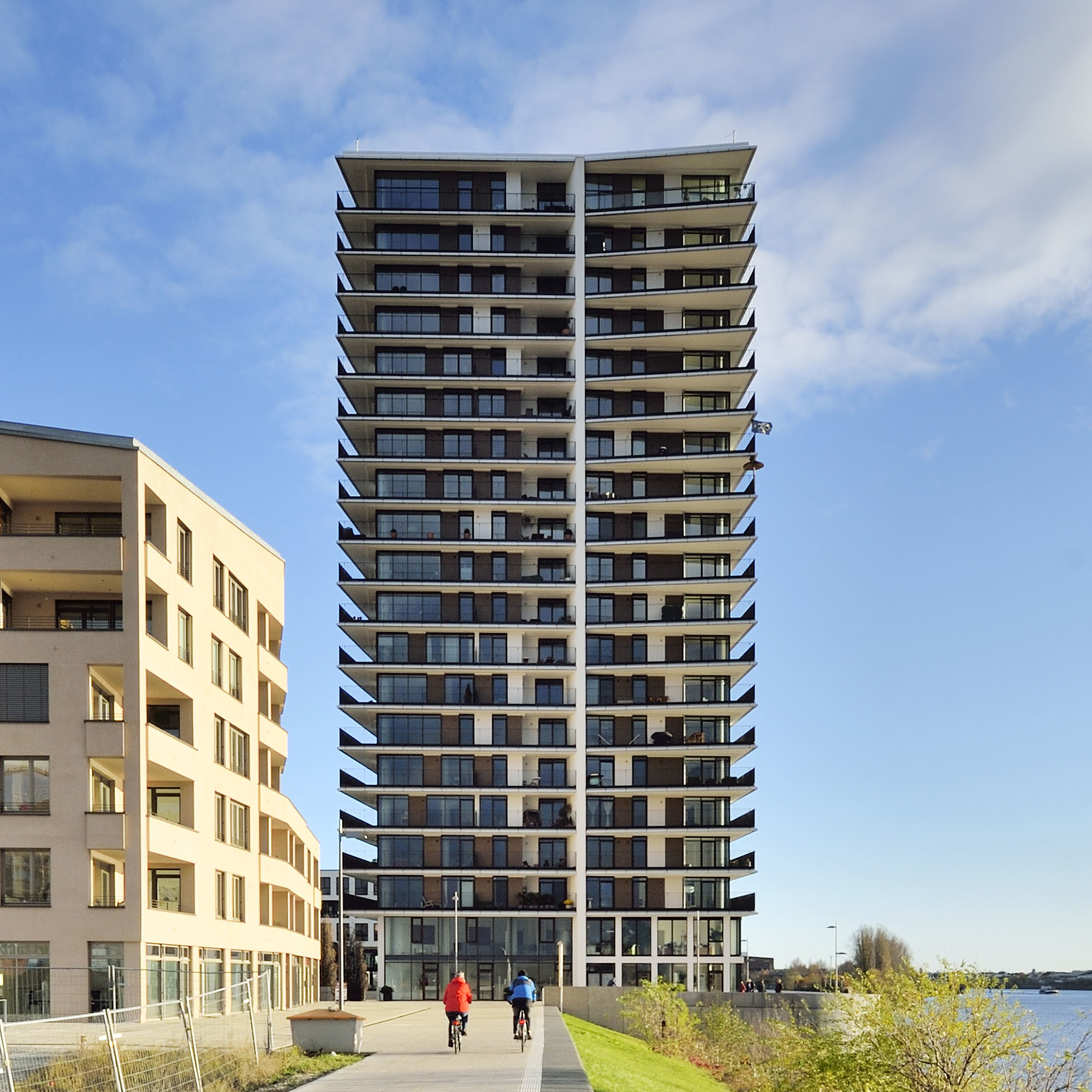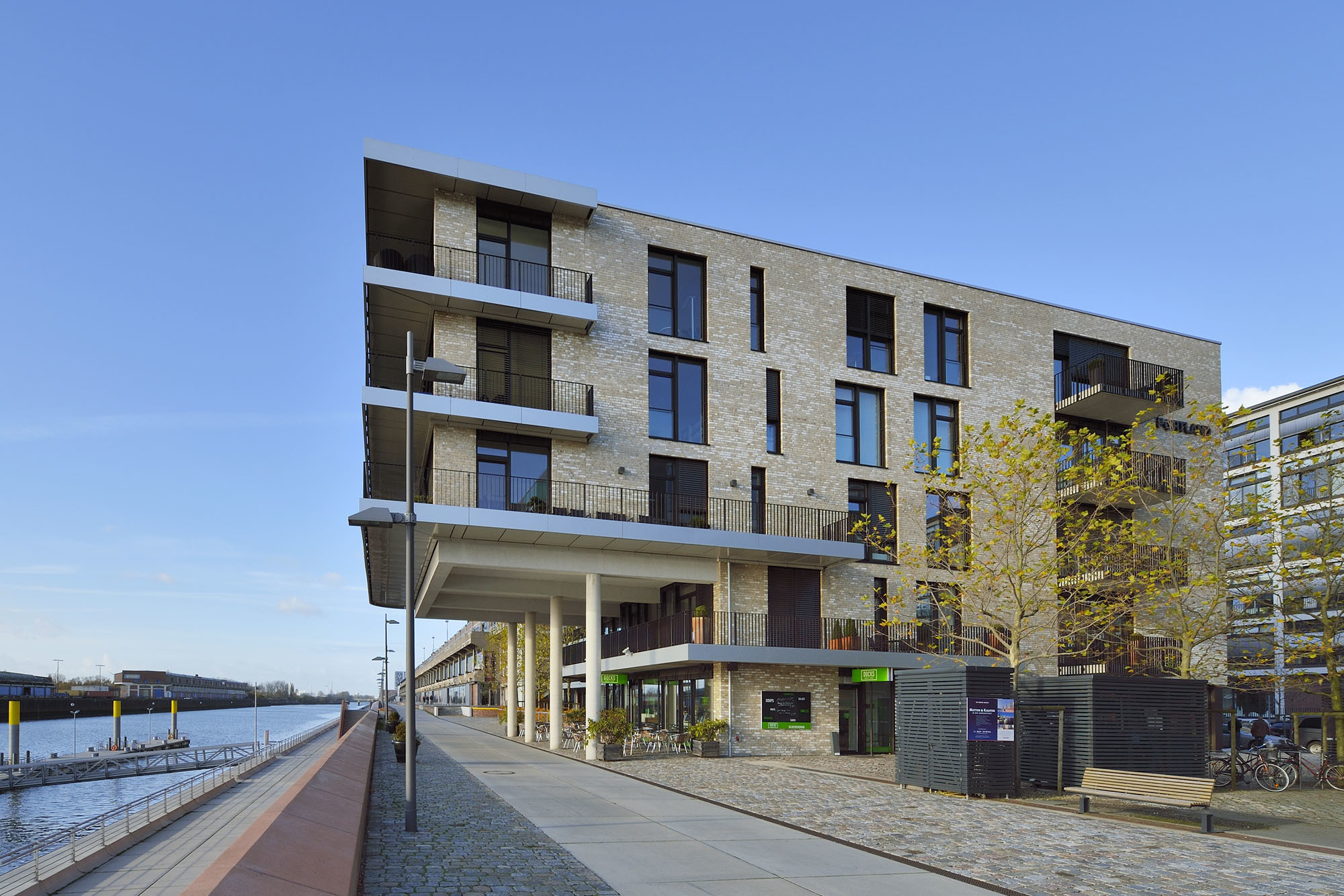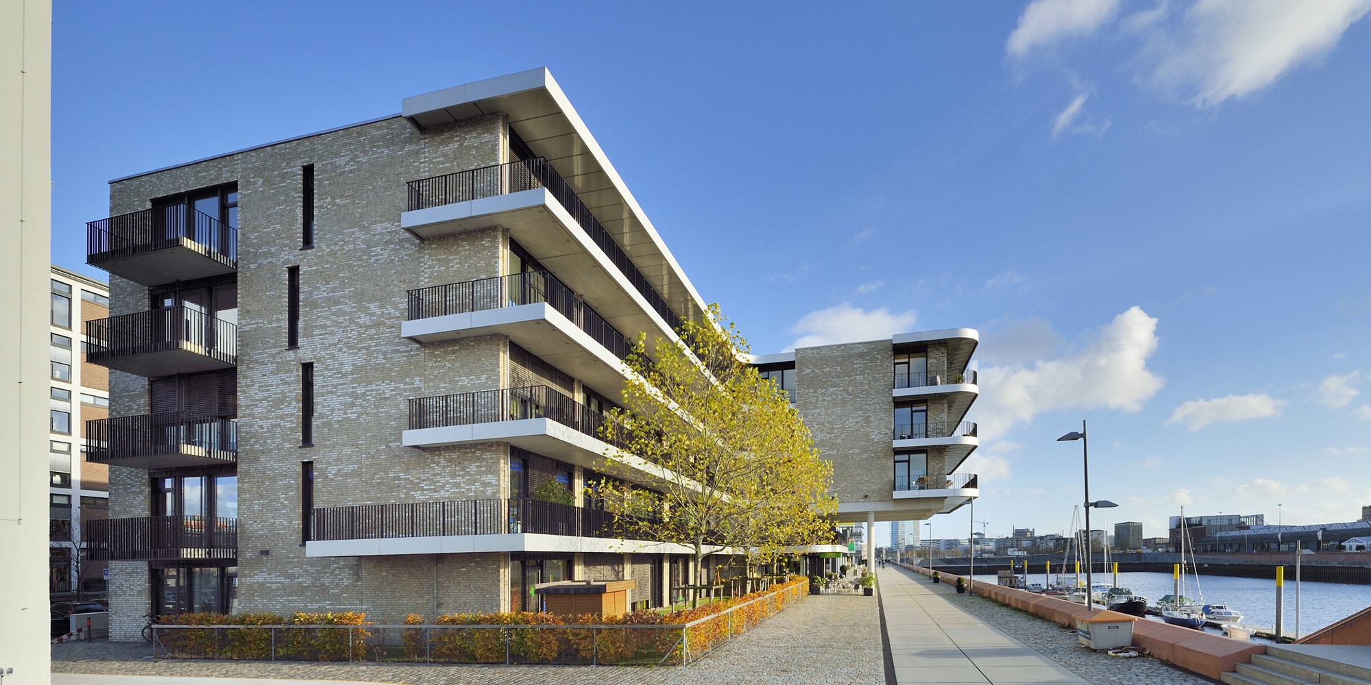 Während pb+ für die Umwidmung des „Schuppen 1" selbst die Tragwerksplanung erarbeitete, zeichnete pb+ bei nahezu allen Neubauten der Überseestadt seit 2009 zwischen Kopfende des Europahafens und Landmark-Tower für die bautechnische Prüfung verantwortlich.