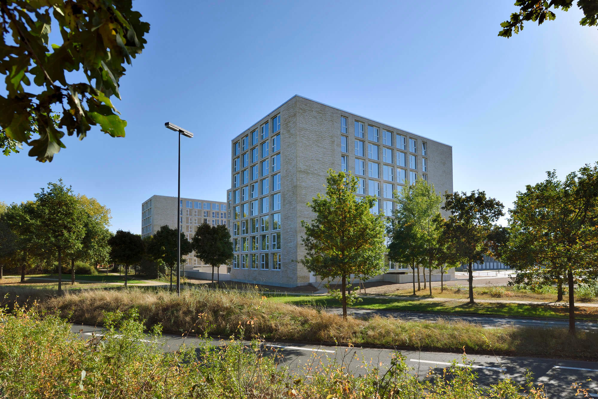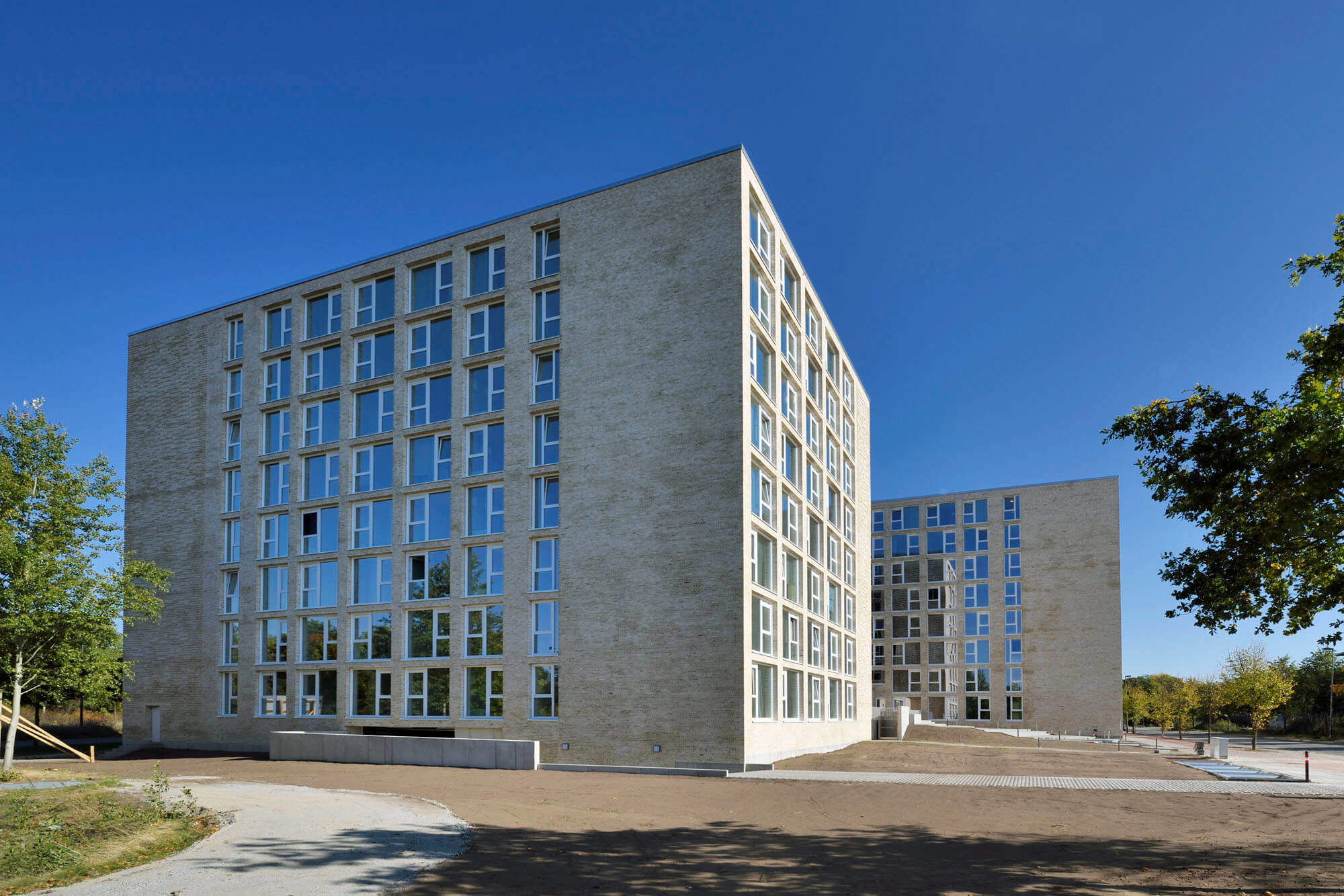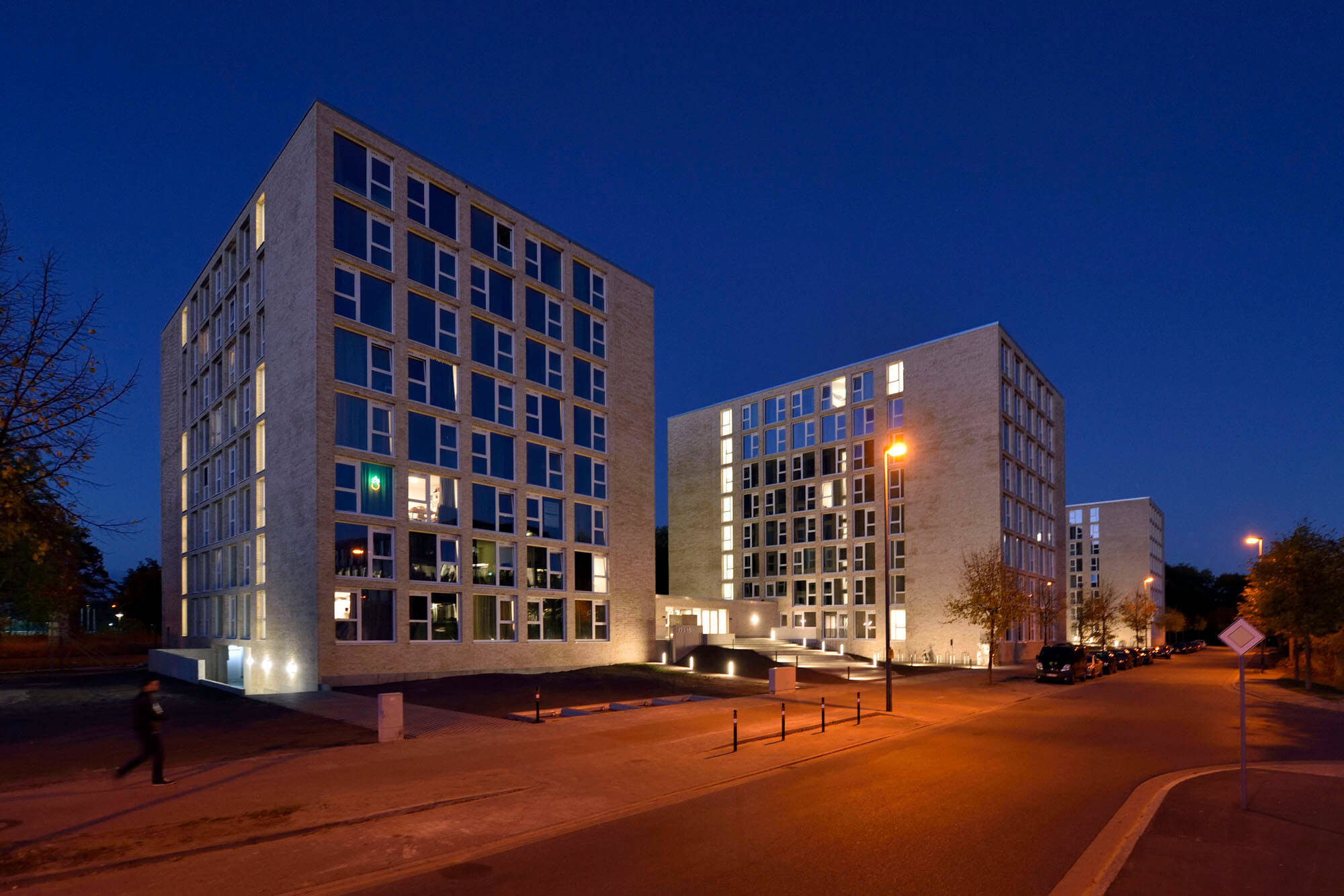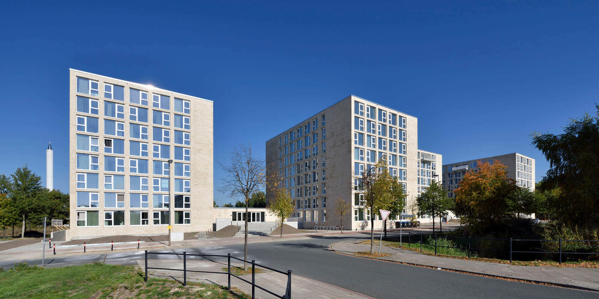 267 Appartements sind zunächst für eine Zeitspanne von 10 Jahren für Flüchtlinge vorgesehen. Anschließend werden diese Unterkünfte wieder als Studentenwohnungen eingeplant. In diesen beiden Gebäudesegmenten ermöglichen unterschiedliche Größen von zwei bis zu vier Zimmern auch die Unterbringung von Familien. Die Wohnungen werden alle mit Küchen und Bädern ausgestattet. Hinzu kommen Gemeinschaftsräume, Räume für die Betreuung von Kindern sowie Büros für die Mitarbeiter des Trägers der Unterkunft.
