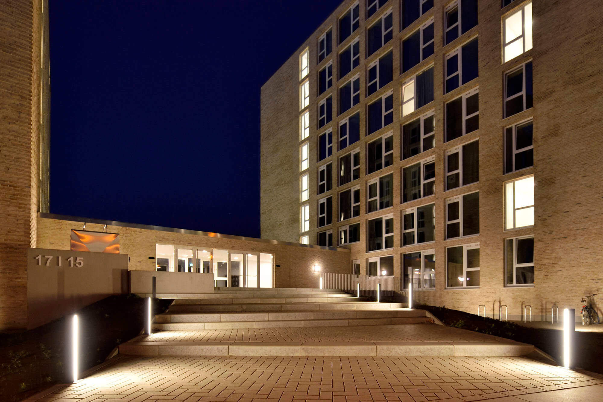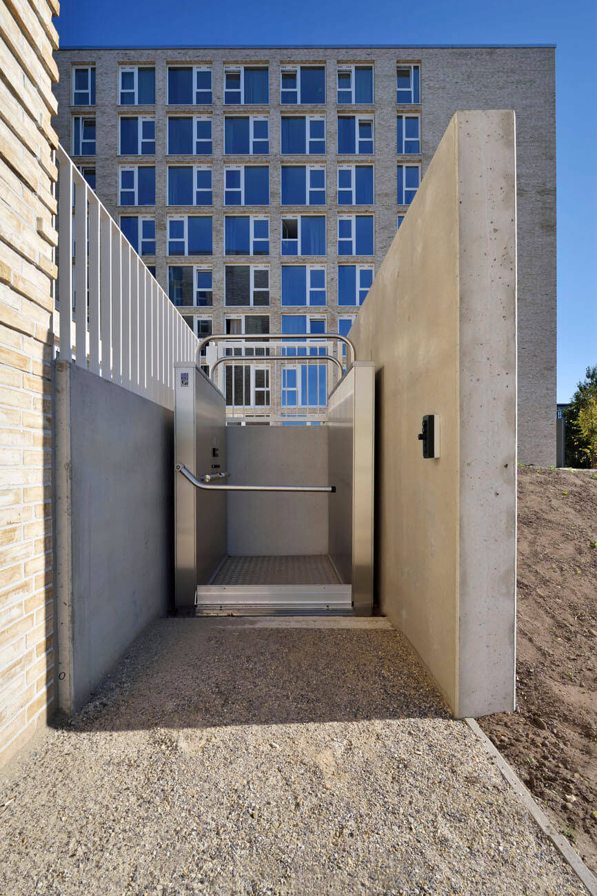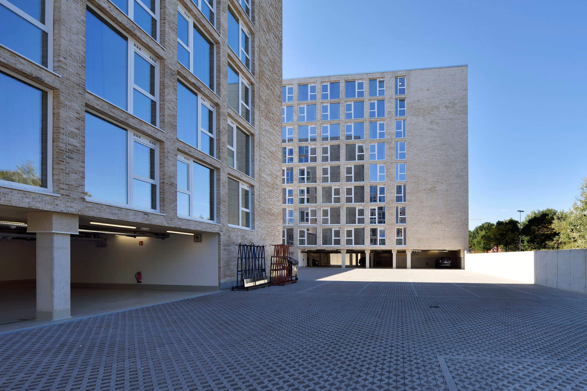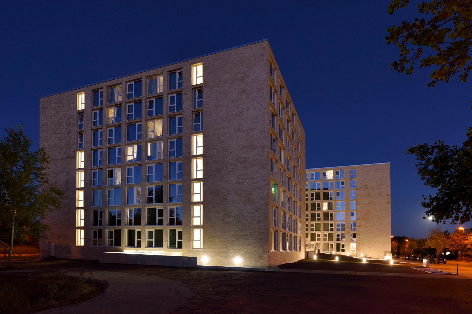 267 Appartements sind zunächst für eine Zeitspanne von 10 Jahren für Flüchtlinge vorgesehen. Anschließend werden diese Unterkünfte wieder als Studentenwohnungen eingeplant. In diesen beiden Gebäudesegmenten ermöglichen unterschiedliche Größen von zwei bis zu vier Zimmern auch die Unterbringung von Familien. Die Wohnungen werden alle mit Küchen und Bädern ausgestattet. Hinzu kommen Gemeinschaftsräume, Räume für die Betreuung von Kindern sowie Büros für die Mitarbeiter des Trägers der Unterkunft.