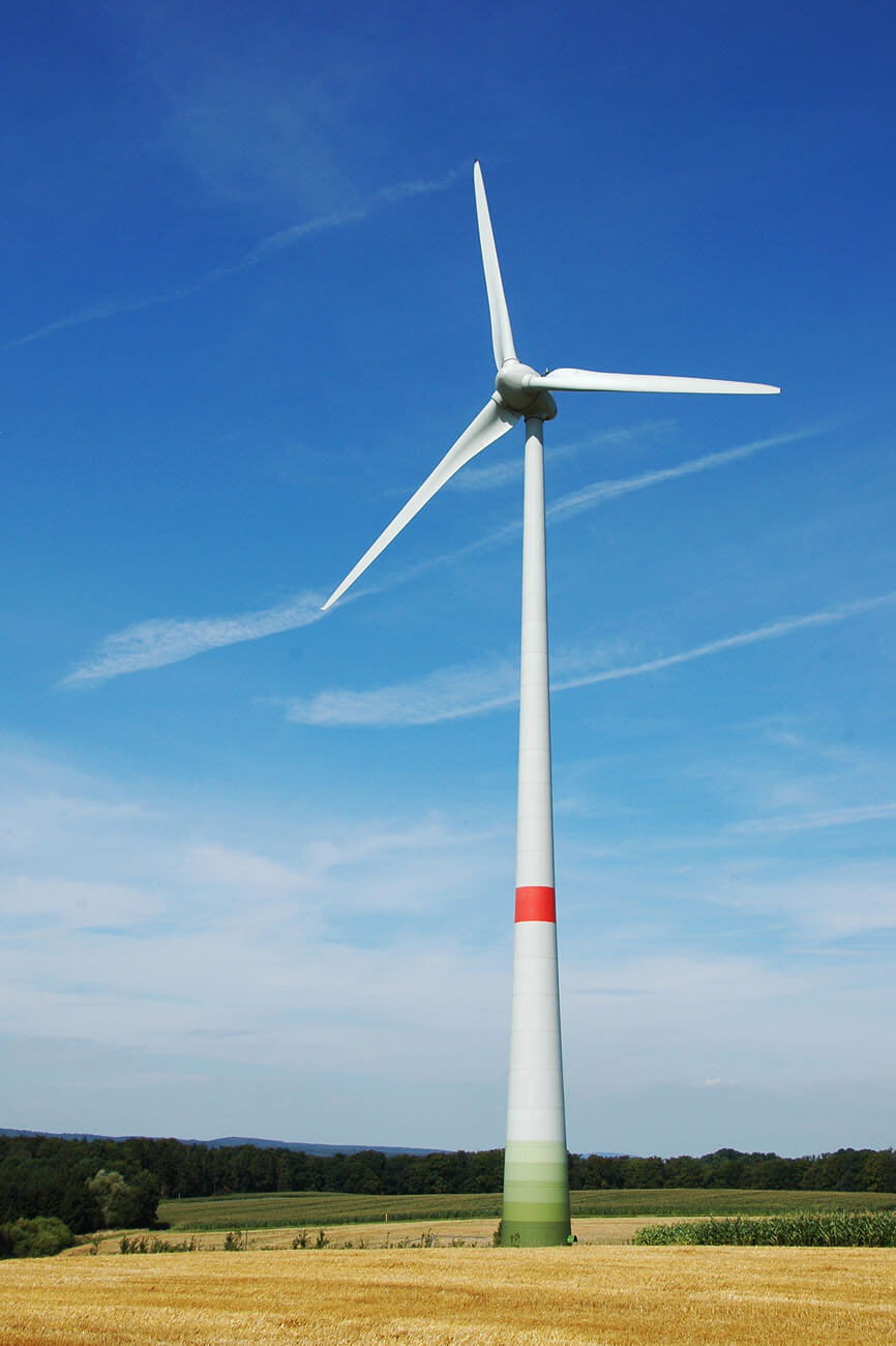 Die statische Berechnung und die Ausführungszeichnungen für Turm und Fundament wurden von uns erstellt und dann durch die Obere Bauaufsicht Hamburg typengeprüft. Die Konstruktion des Turmes, weitgehend aus Fertigteilen, ist Teil der Vorfertigung der Fa. Enercon gemäß unseren Entwürfen und Berechnungen. Ähnliche Anlagen (in der Regel allerdings etwas kleiner) wurden inzwischen Deutschland- und Weltweit etwa 12.000 mal gebaut.